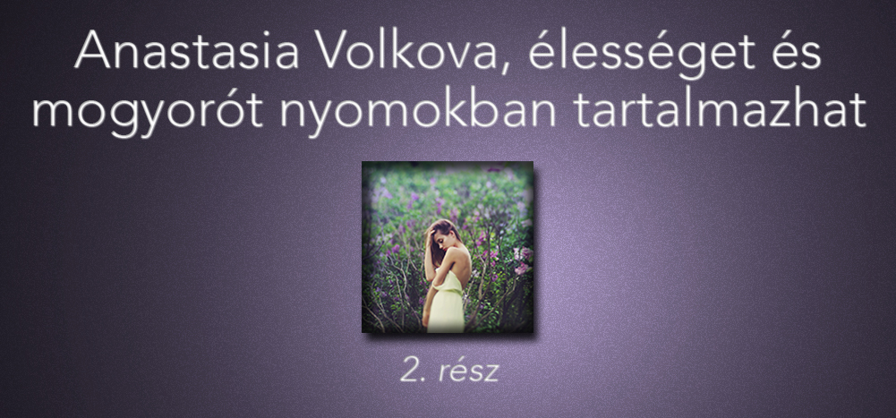 Most, hogy a hölgyekről való ömlengést befejeztük, le is zárjuk a cikkünk 2. fejezetét, ígérjük hamar jön a 3. rész, amiben az utómunkáról, az „Anasztázia kontraszt”-ról lesz szó és, mint fő attrakció letölthetővé teszünk egy Volkova féle Photoshop actiont, ami egy telefonnal, éjjel, egyedül (télen, az északi falon, viharban) készült képet is simán Volkovásít (na jó nem, de ilyen effektet használ a művésznő is : – )